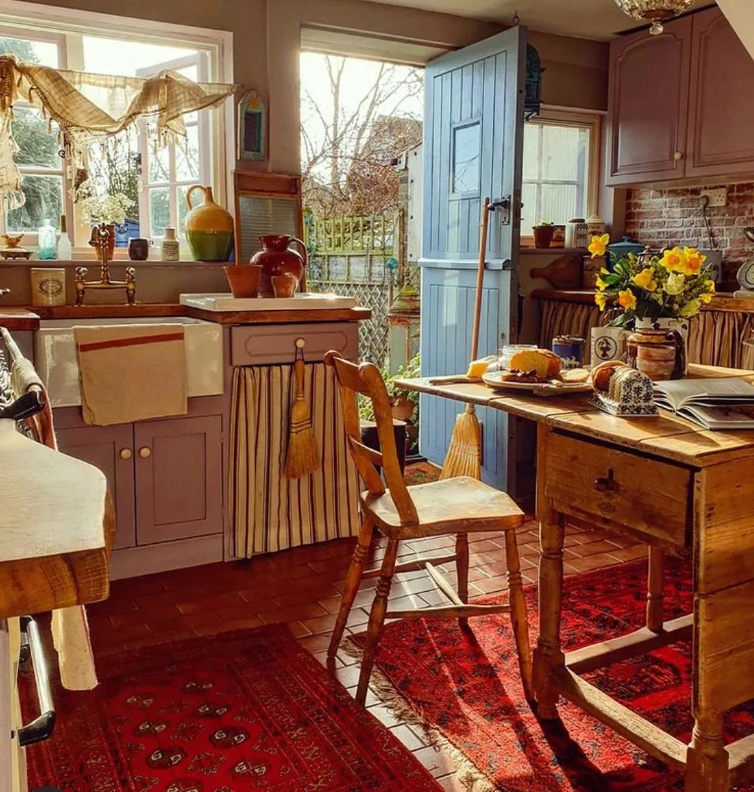 Toward the end of last year I felt like I needed a new archive to connect with in this new house, something that could inspire me. I’ve done this in the past and it’s often helpful. I’ve meant for a long time to post about it here, and I do wish I had done that because I feel a bit disconnected now from the articulation of the concept, but when I look at the pictures I saved, it still makes perfect sense. (Ailie) Bee Olympia is something like a Merlin, a medieval witch who is a time traveler, who is connected to those ways of living & knowing, but here in the present. She cares for her home as a witch / shrine maiden, gardens, and feels her interconnection with magic & the world & animals. I think this came out of my re-ignited interest in the medieval world & medieval art after J & I visited the Met Cloisters, and the thinking I’ve been doing on gardening, medieval gardening, the new garden I have in my backyard, and the way that the Met Cloisters reminded me of my Grandma’s garden.