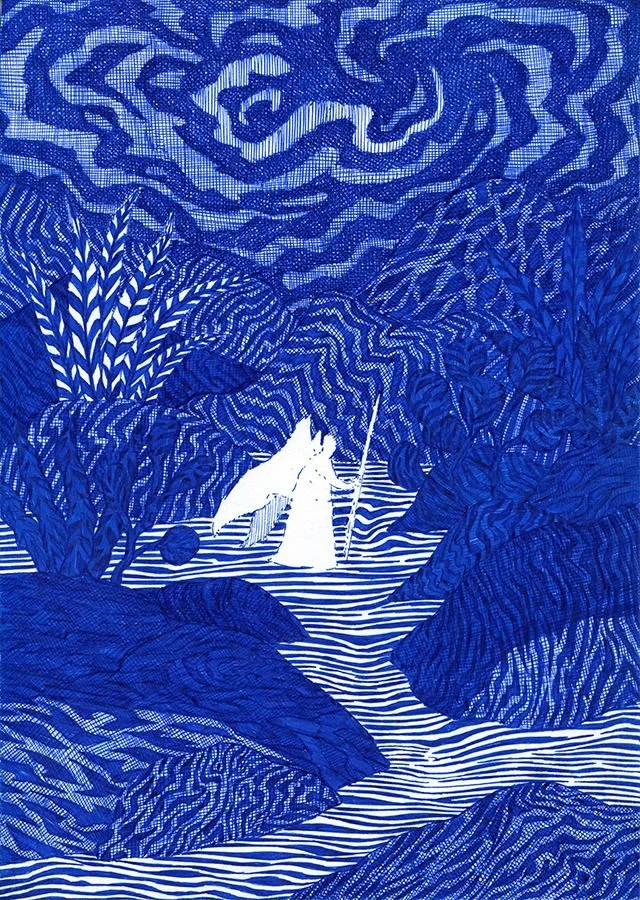 Kevin Lucbert, A soul’s journey, ink on paper.